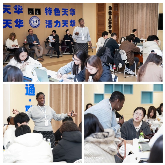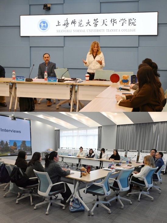 上午9时,美国高等教育委员会教育顾问Dr. Gayle Kearns Buie 以“线上+线下”方式,与北亚利桑那大学来校执教的数位专业课教师展开深度访谈,围绕课程目标、教学策略及跨文化课堂的挑战与支持精准发问。随后,她走进由Dr. Kethia-Gail Martin-Kery主讲的小学教育专业课程《语言与读写教学》随堂观摩。Kethia-Gail 教授妙语连珠、举重若轻,幽默的讲解不断点燃学生思维,师生高频互动,美方课程内核与中方课堂语境在笑声与思辨中无缝交融,呈现出一幅“跨洋同屏”的教学新景。