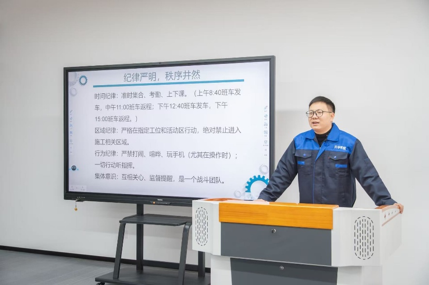 人工智能学院迅速响应,成立党政领导双组长的工作领导专班,构建“学院-专业-实训师资团队”三级责任体系。学校每日提供班车,学院实施“辅导员+指导老师”点对点接送机制,实现全路程安全陪护;同时严格执行领导巡查制度,学院党政领导每日深入实训一线,开展督导检查。