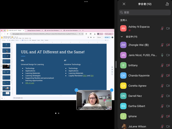 除了核心的导师合作与课程学习,隗老师积极投身于NAU丰富的学术与专业发展活动,极大拓展了访学的广度与深度:她对弗拉格斯塔夫统一学区(FUSD)的辅助技术与通用学习设计(UDL)支持体系进行了专项调研,深刻理解了技术如何赋能教育公平,打造无障碍学习环境。