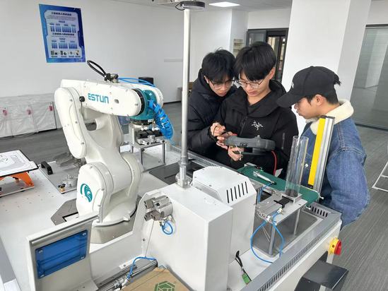 东校区启用后,“引企入校”的校企合作模式已实质落地:科创园首批签约钛虎机器人、臻越自动化等16家前沿领域企业,与学校共建“在地培养、在地实践、在地就业”的生态。一方面,企业入驻为学生提供实习、就业岗位,实训项目可直接对接企业真实需求;另一方面,天华人工智能研究院为企业提供技术支持,破解中小企业研发能力弱的痛点。
