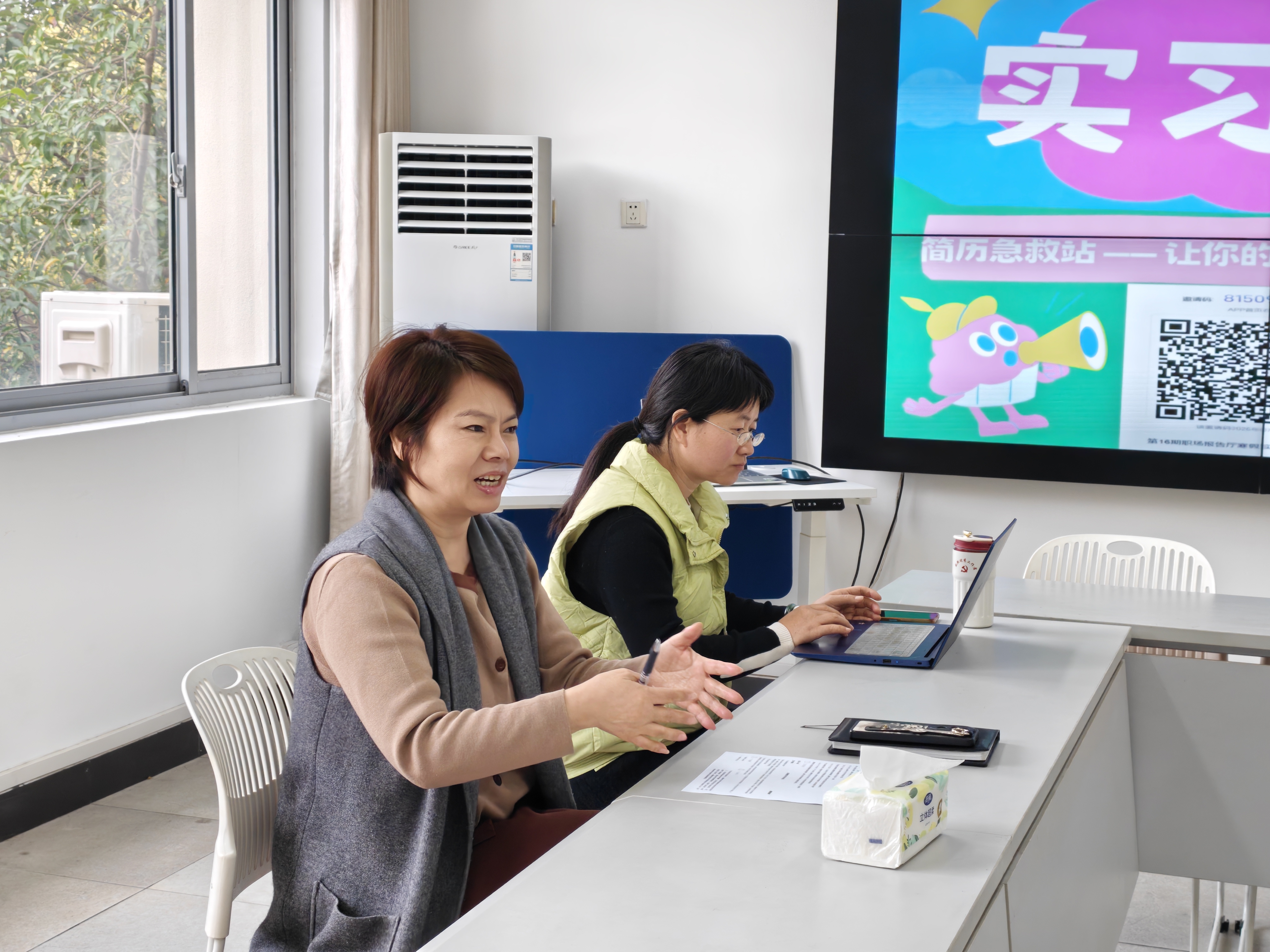视频学习之后,张璐老师围绕“岗位需求导向的简历优化”展开专题分享。她着重强调,简历绝非泛泛而用的“万能模板”,而是精准匹配岗位的“能力说明书”。针对不同求职方向,简历内容需有所侧重:应聘教师岗位,应重点呈现教师资格证、教学实习经历、课件竞赛成果等与教育教学相关的内容;冲刺新媒体岗位,则需突出文案创作、账号运营、短视频剪辑等核心技能。尤其在自我评价板块,要紧扣招聘简章中的关键词,摒弃空泛表述,提炼与岗位高度契合的个人优势,以此提升简历筛选的匹配度。