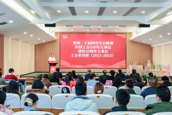 随后,大会进入专题学习环节。全体与会教职工集中学习了党的二十届四中全会精神、中国工会100年大事记、建校20周年大事记等相关内容。通过系统学习,进一步凝聚思想共识,增强责任感与使命感,激发大家投身学校建设和工会事业的热情。