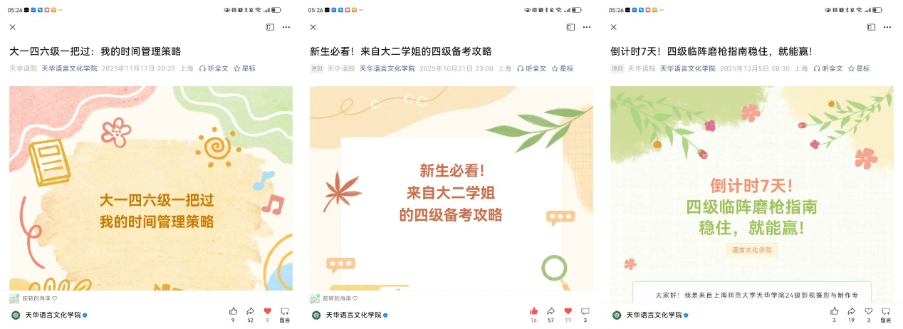 (学生在语言文化学院公众号的发文)