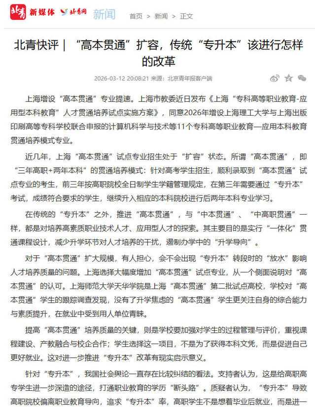 标题:“高本贯通”扩容,传统“专升本”该进行怎样的改革