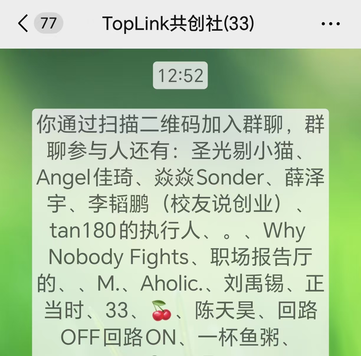 讲座结束后,原定5分钟的问答环节足足持续了十几分钟!同学们争相举手,有的询问如何找到第一个客户,有的请教AI工具的具体使用方法,更有数十名创业爱好者现场加入“TopLink共创社”的社群。