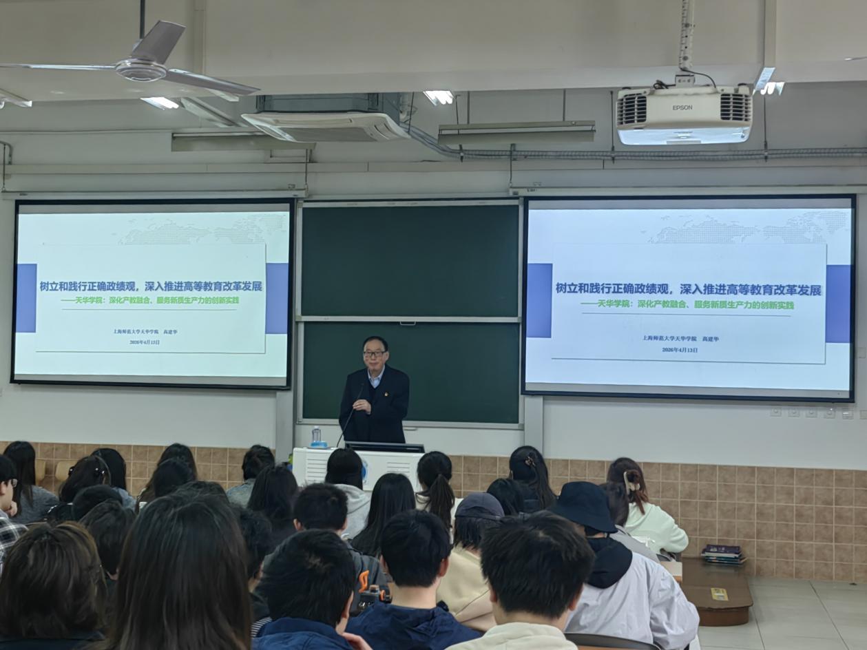 2026年4月13日,学校党委书记高建华以“树立和践行正确政绩观,推动高等教育高质量发展”为主题,走进思政课堂为同学们讲授了一堂兼具理论高度、实践深度、育人温度的思政课。