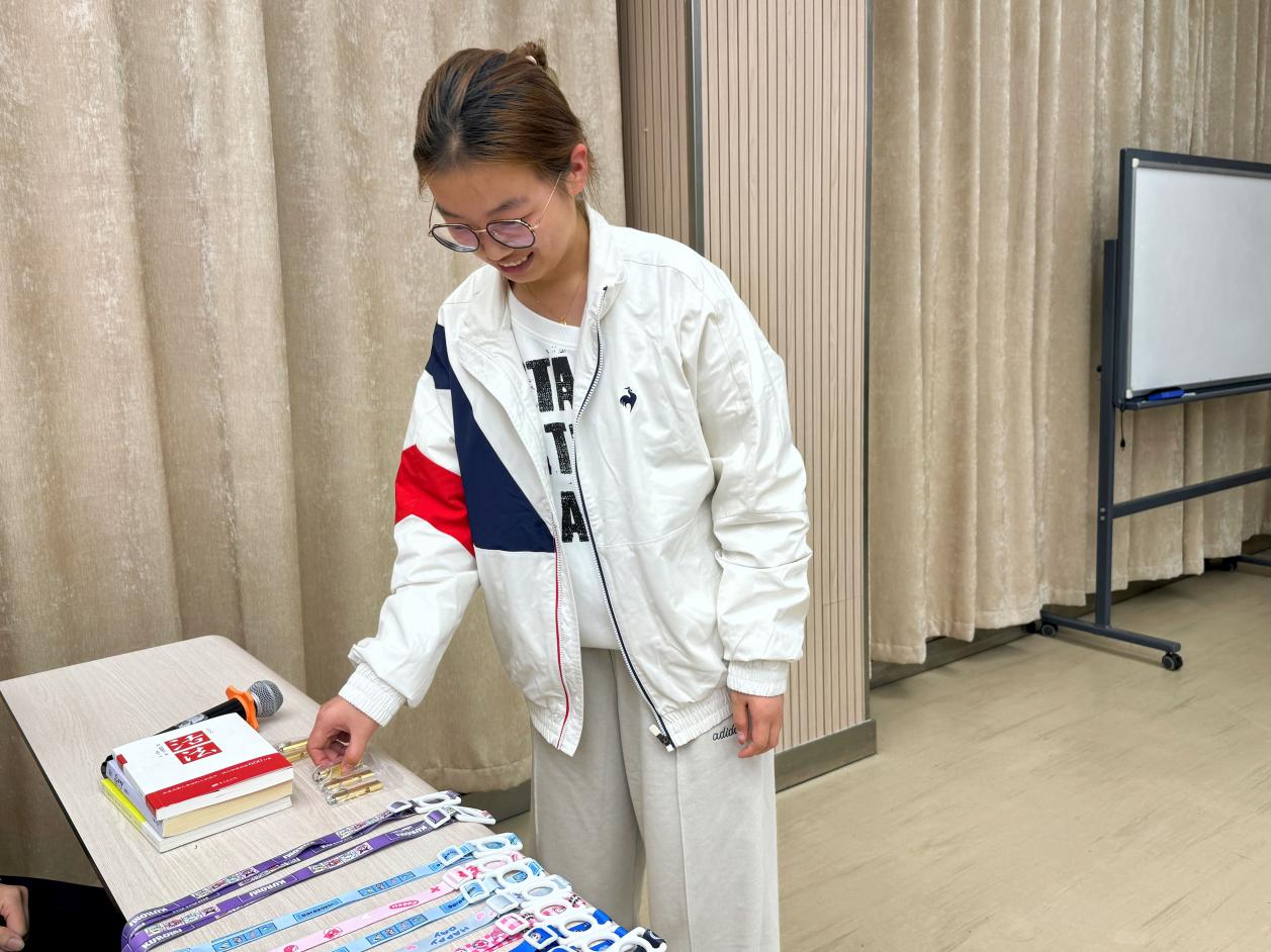 讲座过程中,同学们全神贯注,不少人举起手机拍下干货页面。为了让现场氛围更加活跃,左碧彦特别设计了一个互动小游戏。游戏过程中笑声不断,大家在轻松的氛围里重新认识了自己和身边的伙伴。左碧彦还为上台分享的同学准备了精美户外小礼品作为奖励,瞬间点燃全场热情。