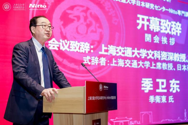 论坛由上海交通大学文科资深教授、日本研究中心主任季卫东主持。在开幕致辞后,日东电工(中国)投资有限公司董事长盐见太先生作题为“Nitto创新理念介绍”的主题报告,分享了日东集团在“环境、社会和治理”理念下的创新实践与全球研发布局。