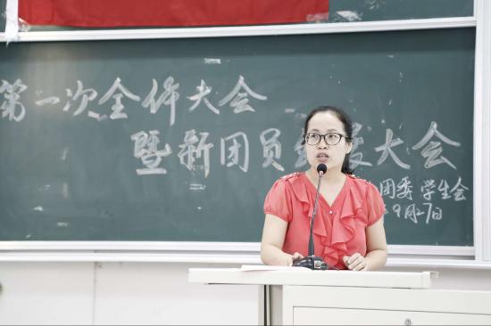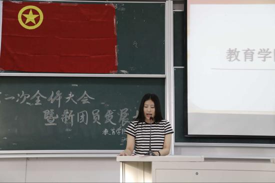 此次大会共分为两项议程:一、学生会第一次全体大会;二、新团员发展大会。首先,教育学院分团委书记朱可老师回顾了教育学院第九届学生会过去一年的工作,并表示学生活动都离不开学生会所有成员们身体力行的努力与付出;希望教育学院分团委第十届学生会可以秉持着求真务实、开拓创新、全心全意为同学服务的信条,为我校“活力天华”的建设贡献力量,共创教育学院的新风貌。