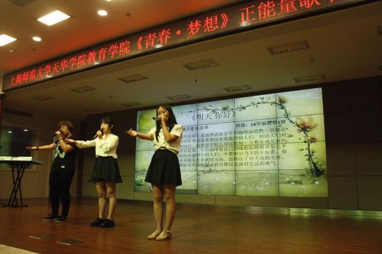 2016年5月24日下午,教育学院在晖华楼小剧场成功举办了“青春·梦想”正能量歌唱比赛。学校党委书记助理凌琦,教育学院党总支副书记华芸、章双喜,学前教育专业第一支部副书记吕黎,艺术教育专业第二支部书记刘欣,辅导员程玉华、许小康、卢哲等以及教育学院13级、14级、15级的学生参加了此次活动。由教育学院团支书小分队主办。