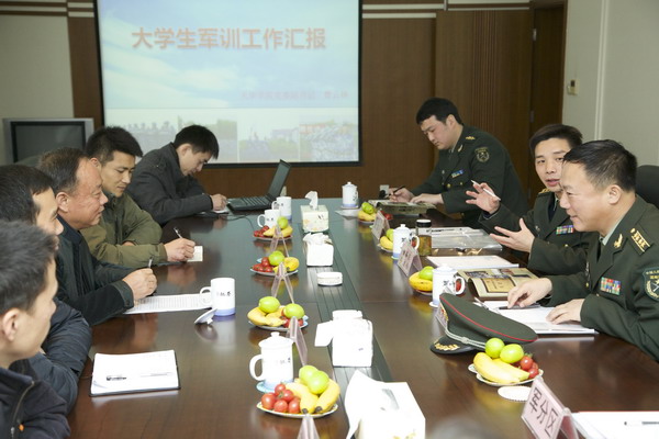 | 2014年3月6日上午9:30,辽宁省军区阜新军分区参谋长杨景超、上海警备区军训办公室主任李屹勇等一行3人来我校调研学习大学生军训工作。我校党委副书记、学保处处长、武装部部长曹云林,带领学保处处长助理刘洪伟、周建文、军训科科长刘庆奇、治安科科长张军、消防科科长周建光、综合事务科科长赵科、综治办主任李根胜等人参加了交流活动。 | ||
