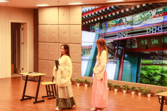 取自四大名著之一《红楼梦》的舞台剧——《香菱学诗》拉开了本次比赛的序幕。学子们将“香菱学诗”的片段与经典阅读相结合,配以优美的服装,清雅的背景音乐,将香菱在学诗过程中认真对待每一件事,不放弃,不抛弃的精神展现的淋漓尽致,值得每一位学生去学习。