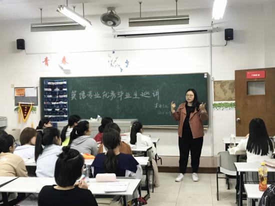 在同样从天华毕业,现担任英语专业辅导员的沈美老师,以校友的身份分享了自己在大学四年中的学生工作经历,希望同学们能够提早做好规划,早日明确努力目标和方向。沈老师还特别强调:要时刻关注毕业条件和学位授予条件,并对重修和实习等问题做了详细说明。