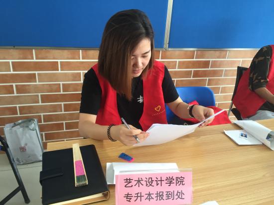 2017年9月9日上午,艺术设计学院迎来了学院第一批专升本新生,在学院党总支书记王慧荣老师的领导下,经过三个专业相关辅导员的统筹安排,以及老生志愿者的热情帮助下,共计三十六名学生已报道完毕。