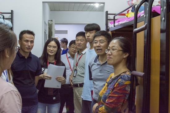 2018年9月17日晚上20:30,上海师范大学天华学院副校长、工学院院长吴国兴,工学院副院长樊江玲,党总支书记赵科,党总支副书记李书祥、金玫,党总支组织委员牛风学,在新生辅导员、副辅导员及各班班助理陪同下视察慰问了3、4号宿舍楼新生。