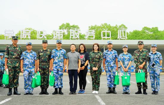 随后,史院长带领参加慰问的学院党政领导为辛苦训练的教官们逐一送上慰问品,并同他们亲切握手,表达对他们辛勤工作的感谢和肯定。最后,史院长祝愿全体语言文化学院2016级学子能够在9月8日阅兵仪式上以最佳精神面貌和仪表仪态接受学校领导的检验。