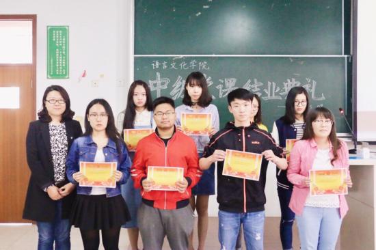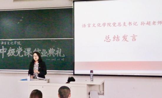 5月9日下午,语言文化学院2016-2017学年第二学期中级党校结业典礼在日华楼阶梯教室隆重举行。语言文化学院党总支书记孙超,副书记杨央,学保处处长助理、德语专业党支部书记曹占侠,日语专业支部书记李江涛等出席了结业典礼。