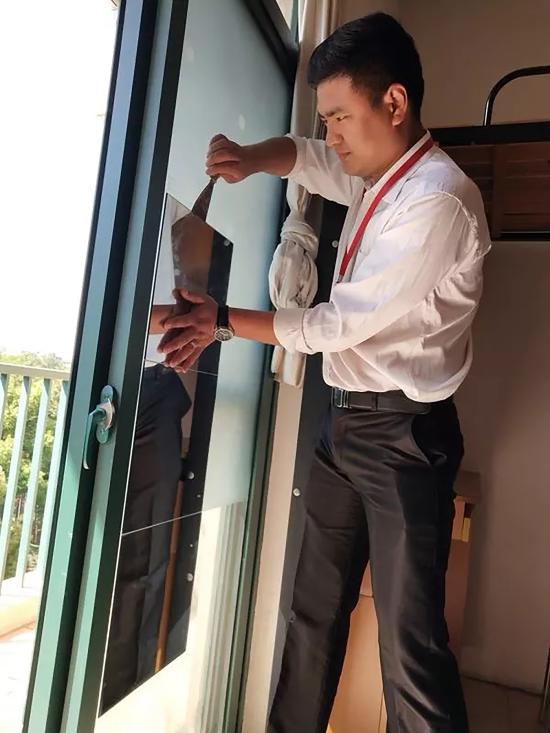 学院高度重视此次毕业生宿舍清退工作,对此次工作统一标准,严格要求:阳台是否堆放杂物,浴室、卫生间是否刷洗干净,洗漱台与地面是否干净整洁;寝室成员们的床铺和桌柜的物品是否全部清空、是否擦拭干净;重点检查柜子是否存在粘钩、贴纸、镜子等物品,力争让每个宿舍达到标准。