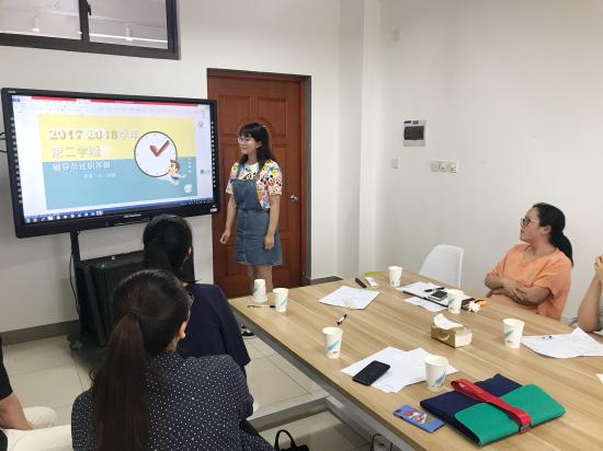 述职中,老生和毕业生辅导员分享带班经验,让新生辅导员收获颇丰,转换管理理念,对今后的班级管理有了新的方向。同时,参与述职的老师们着重提到了以下几个方面。首先,要做好学生的政治思想工作。基于实际情况,对不同学生因材施教,尤其要重点关注特殊群体的动态,密切关注学生的思想动态。其次,时刻紧抓优秀学风的建设,着力培养骨干班委。定期召开班委例会以及定期组织学生干部培训等方式,加强班委团队建设,提高班委队伍的能力和素养,从而推进建设学习型班级。最后,尤其重视中英文辩论赛,规范辩论流程,培养学生逻辑思维以及语言表达能力。