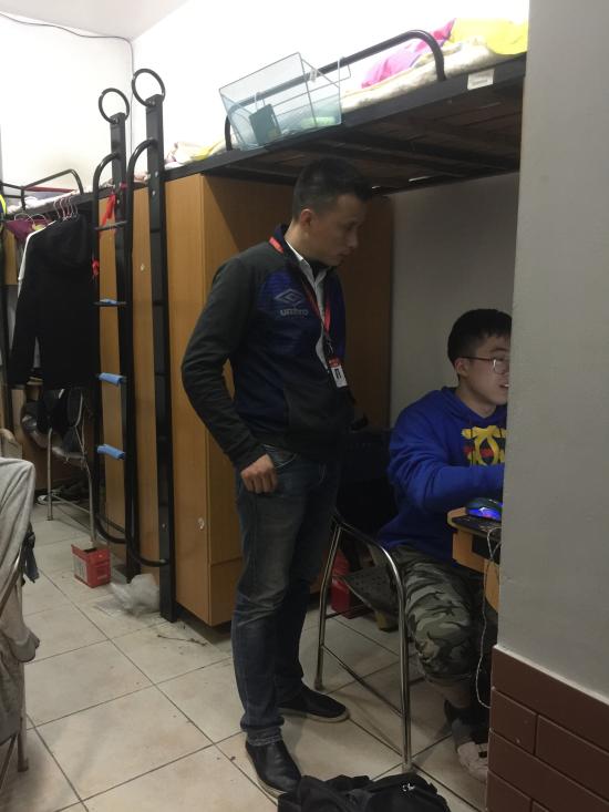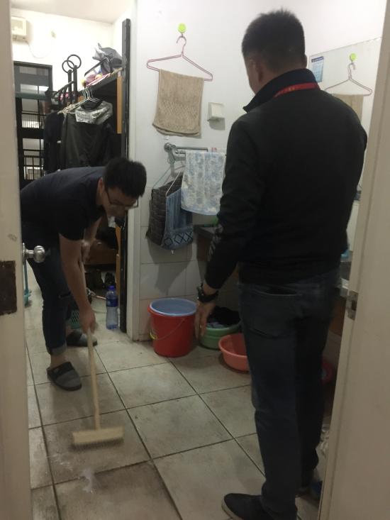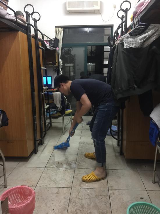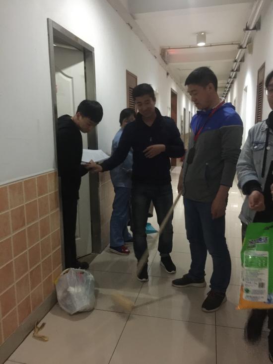 2018年4月24日星期二19:30,在工学院党总支书记赵科,党总支副书记李书祥以及各班副辅导员的带领下,工学院自管会成员给大四毕业生各寝室分发刷子,洗衣粉等用具,督促他们完成离校前的最后一项任务——寝室打扫工作。重点就地面整洁展开清洁任务,学长们积极配合,认真劳动,让衣柜下无杂物、地面瓷砖整洁如新,为迎接新一届的学弟学妹们,也为学弟学妹们树立了乐于奉献的好榜样。书记与副辅导员们也对本次任务进行了验收,对同学们的工作热情很是满意,就本次卫生良好的宿舍进行了表扬。