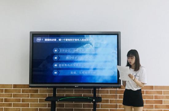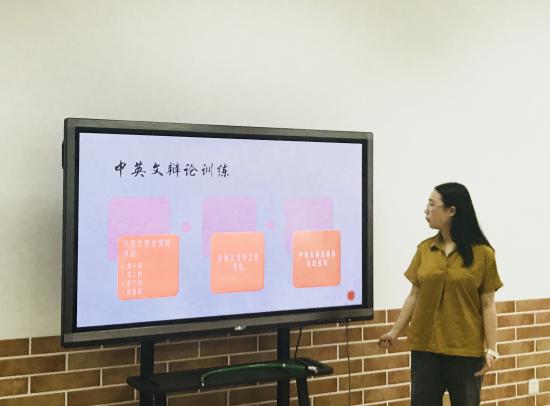 接着,由答英娟老师讲话。答老师指出,经过本学期的辩论训练,同学们都能良好地掌握辩论的基本流程与规则,但也有困难之处,例如无法完全脱稿,自由辩论时不够流畅等问题。同时,答老师希望通过辩论训练的开展,大家能从中得到收获,并把这个训练活动做得更好、更扎实,也希望各主席与组长能够发挥核心作用,有序、高效地开展辩论工作。