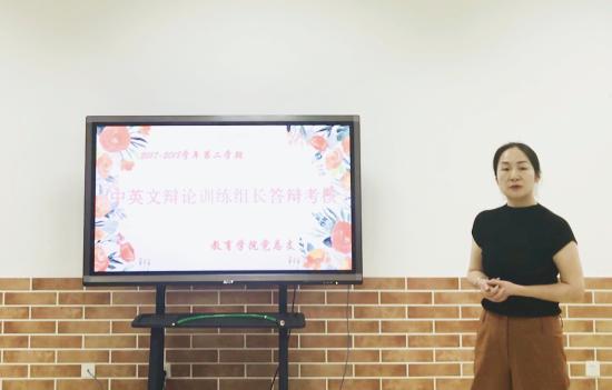 2018年6月19日中午12点,教育学院2017-2018学年第二学期中英文辩论训练组长答辩考核在图书馆第六研讨室顺利开展。担任本次考核评委的有教育学院党总支书记答英娟老师、教育学院党总支副书记何凯老师、艺术教育专业第一支部书记贾孟云老师及教育学院小学教育专业党支部书记颜银树老师。