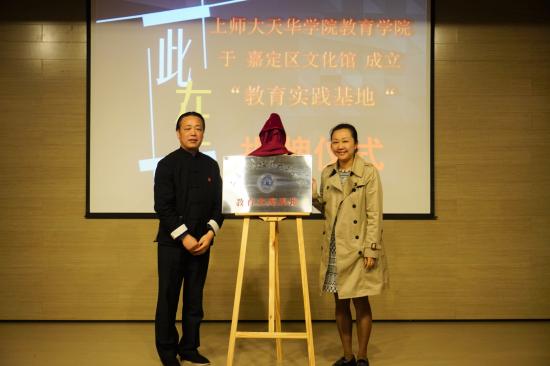 为更好地实现资源互补,响应国家文化发展战略中的“文教结合”,副校长龚春蕾老师和嘉定区文化馆党总支书记张波老师在开幕式的最后,为在嘉定区文化馆成立教育学院“学生实践基地”进行了揭牌仪式,双方将在艺术教育和“馆校合作”上有更多的合作。