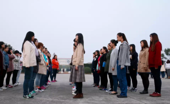 2015年11月2日下午4:30,在这个秋意渐浓的季节,傍晚时分的学校操场上还挂着一抹斜阳。天华学院2015年秋季运动会表演项目和专业方队的各项训练正在大操场上热火朝天的进行着。此起彼伏的口号声喊出了学生的士气,也彰显了不同学院不同专业的特色。在林林总总的训练队伍当中,语言文化学院五个专业的同学们克服天气的寒冷,按时到操场上进行专业方队的集训。部分同学当天上午刚刚参加了学校组织的义务献血,身体稍有不适,但他们仍旧准时出现在了训练场。