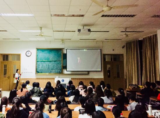 2018年10月15日,语言文化学院汉语言文学专业在日华楼阶梯教室403举办重阳节活动,迎接一年一度的重阳佳节。