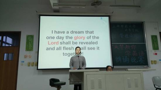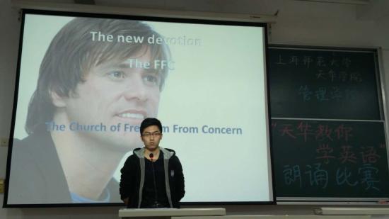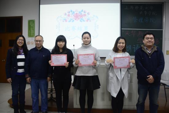 2015年11月17日16点20分,我校管理学院以“天华教你学英语”为母本,以提高学生英语口语水平为目的,为管理学院的同学们准备了一场别开生面的演讲比赛。管理学院院长程葆青、语言文化学院指导教授万正方、管理学院党总支常务副书记王一青以及辅导员老师们参加比赛。