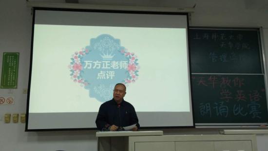 最后,语言文化学院指导教授万正方老师为此次的朗诵比赛进行专业点评,就每位选手的表现情况逐个点评,字字珠玑,发人深省,让选手们受益匪浅。通过此次比赛,同学们会以更加热情和饱满的精神投入到英语的学习中。