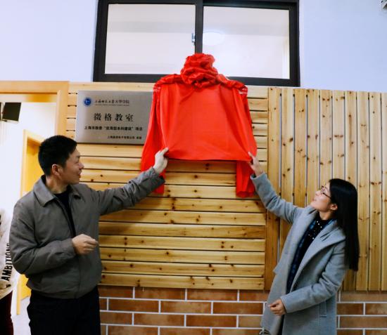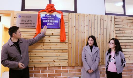 接着,进行教育学院中英文辩论训练录播中心揭牌仪式。由刘老师、韩老师、沈老师进行揭牌。现场的辅导员和同学们表示热烈祝贺。