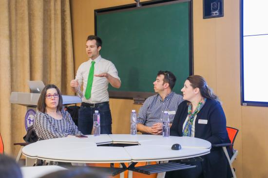 2018年4月2日,美国伊利诺伊州立大学教师团来到我校,在智慧教室举行2017级视觉传达设计专业中美班夏季课程动员会。五位伊利诺伊州立大学的教师,美方专业主任Michael Wille教授, 以及四位任课教师Tyler Lotz, Melissa Johnson, Lea Cline, Brain Franklin远道而来,与国际交流处处长胡珍、艺术设计学院副院长朱花、院长助理包臻隽、中美班专业主任钟华勇及视觉传达设计专业老师一同出席动员会,此次动员会由包臻隽老师主持。