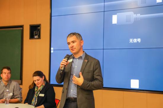 有朋自远方来,不亦乐乎。首先包老师向大家隆重介绍了五位珍贵的朋友,全体师生鼓掌热烈欢迎。接着美方专业主任 Michael教授向同学们表示亲切的问候并介绍了夏季课程的安排,不同于去年冬季集中授课的安排,此次夏季课程将从六月四日开始直至七月六日结束,采取分批教学的模式,使同学们能更专注于一门课程的学习,从而提高教学质量。