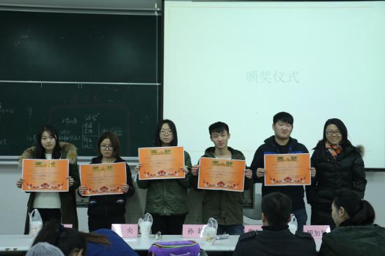 在聆听完各位代表发言后,党总支副书记杨央总结发言,首先她充分肯定了本学期该项活动开展所取得的成效,对获得表彰的宿舍及个人表示祝贺,接着指出学习型宿舍工作的推进旨在引导学生惜时,将碎片化的一小时如何合理利用从而立显成效,通过一小时的学习交流顺利完成高中阶段到大学阶段学习方式方法的过度和适应,在学长学姐的帮助下理顺课程体系和重难点,为期末备考树立自信心;同时学习型宿舍活动的开展也体现了各专业党支部党员和积极分子的个人先进性。最后预祝全体学生可以顺利通过期末考试,让自己的学业成绩更上一层楼。活动最后,党总支书记孙超为本学期涌现出的8个优秀寝室,3个优秀结对份子,3个典型帮扶寝室的代表逐一颁奖,并合影留念。