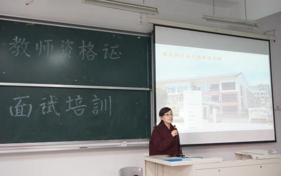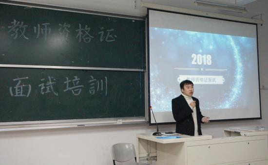 2017年12月21日下午16:15,教育学院教师资格证面试培训讲座在日华楼302阶梯教室举行,参加此次讲座的为2015级学前教育专业的全体学生。