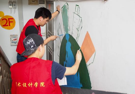2018年6月8日下午一点,艺术设计学院党员服务中心携手各支部于州桥社区开展社区墙绘活动。