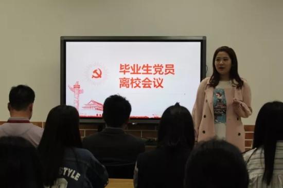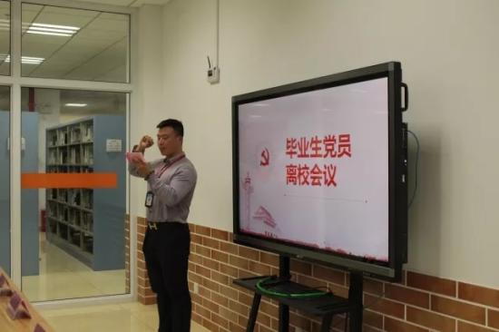会上,毕业生党员签订了责任书,承诺在校期间以及在今后自觉发挥模范带头作用,带领全体毕业生做好文明离校的工作。德语专业党支部书记曹占侠带领全体毕业生党员重温了入党誓词,在庄严的誓词中感受入党初心。