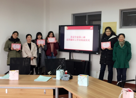2017年12月29日下午,语言文化学院英语专业举办了第二届“应用翻译工作坊”结业仪式。仪式由工作坊指导老师王晓岚主持,工作坊全体学员参加了仪式。学院副院长胡雅楠、英语专业负责人胡玥应邀出席了仪式。
