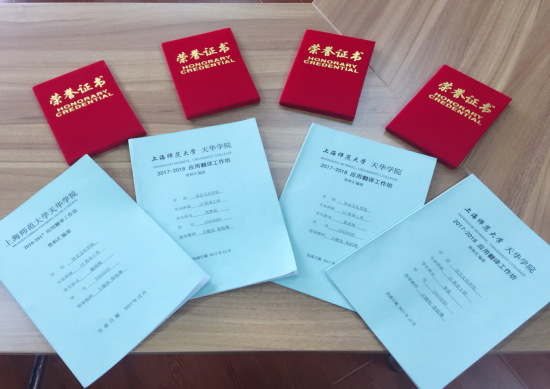 最后,翻译工作坊学员们展示了他们的翻译学习实践成果——《2017-2018应用翻译工作坊资料汇编册》。胡雅楠副院长和胡玥老师为全体学员颁发了结业证书。至此,英语专业第二届应用翻译工作坊圆满结束。