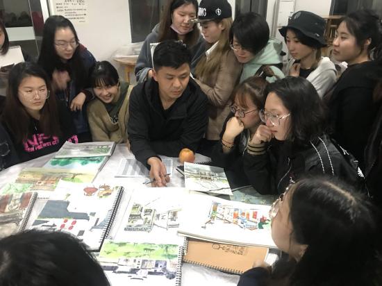 4月24日上午8:30,同学们进入宏村写生基地进行参观。通过导游对当地风土人情、特色文化的介绍,同学们对这些独具特色的建筑更为了解,并于10:00正式开始写生。在此期间,老师们来回巡视并对同学们的作品进行指导点评。