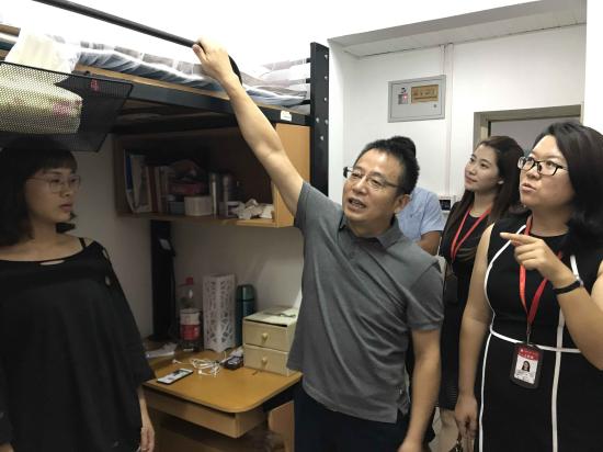(史文院长和孙超书记带领全体大一新生辅导员来到学生寝室)