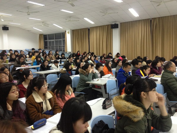 | 2014年3月4日,语言文化学院举行第二十六届“韩素音青年翻译奖”竞赛参赛动员大会,大会由语言文化学院万正方教授主持。 学校副校长、语言文化学院院长史文博士到会作动员报告,第二十四届英译汉全国第一名获得者黄蔚老师、第二十五届英译汉全国一等奖获得者邢�老师、第二十四届汉译英全国二等奖获得者施华琛同学和汉译英优秀奖获得者范德阳同学分别作了交流发言。最后教育与艺术学院副院长徐娟老师为大家作了精彩的第一堂参赛培训课。 | ||