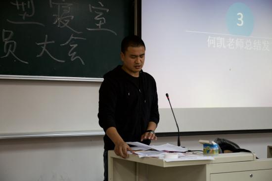 (何凯老师为大家讲解开展学习型寝室与学习型班级的意义)