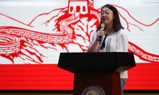 首先,由15级优秀学生代表陆仪洁发言,她从在天华的学习,工作以及生活三个方面入手,希望新生们能够牢记三抓:抓早晚自习英语教学视频播放、抓中英文辩论训练、抓经典阅读,学好英语与专业课,多读经典,做到上课不迟到早退,不违反课堂纪律,尊重课堂,尊重老师,认真学习;多参与学生活动,努力工作,充实自己的大学生活;学习独立与自律,不要将大学的自由化为散漫,抓紧这四年宝贵的时光,做自己喜欢做的事,成为最好的自己。