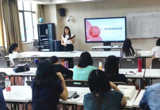 然后,教学副院长韩苏曼与老师们一起学习了我校一系列教学管理规章制度。韩老师不仅带领教师们共同学习了我校教师教学工作规范、教师课堂教学工作规范、教师调、停课管理规定及教学事故认定及处理办法,且将其中特别重要的注意事项一一罗列出来,使教师们的学习更加有重点,从而保证教育学院的教学有序进行。