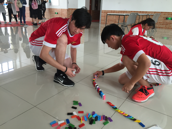 (选手们参加在光华楼的多米诺骨牌比赛)