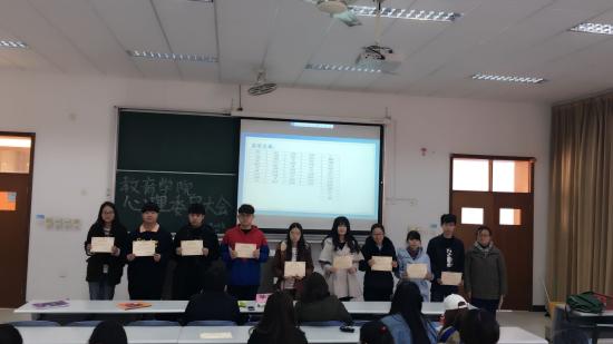 随后,高德翔老师发言,他认为,在平日生活中学习一些心理知识对身心健康非常重要,号召大家继续对心理学保持浓厚的兴趣。最后,由华芸老师为2016年11月份开展的“朋辈心理辅导”培训中顺利结业的同学颁发结业证书,并拍照留念。华芸老师对顺利结业的同学表示祝贺,并充分肯定了心理委员们的重要作用,愿大家继续努力,为教育学院创造一个更加美好的未来。