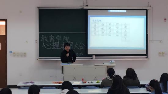 会议伊初,主持人向大家介绍了彩虹心灵工作室的发展历程、工作宗旨以及组织框架。紧接着,回顾了过去三年开展的精彩活动,并布置了教育学院心理委员新学期工作计划。接下来,15级、16级心理委员代舒慧、张晓晔两位同学就“如何成为一名优秀的心理委员”主题发表独到的见解,她们的精彩分享让同学受到了许多启发。