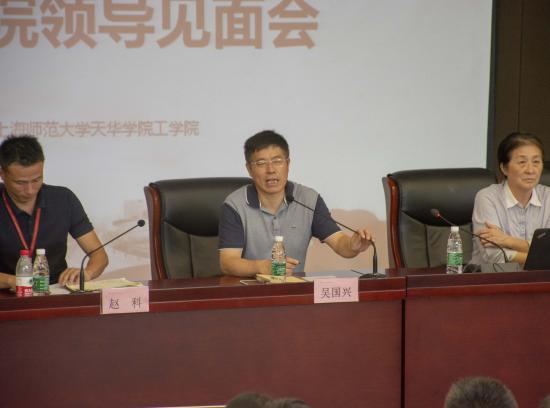 2018年9月17日13:00-14:00于晖华楼报告厅举行工学院领导见面会,出席本次会议的领导老师有天华学院副校长、工学院院长吴国兴,常务副院长林军,党总支书记赵科主持会议。